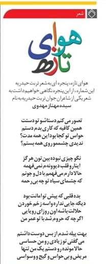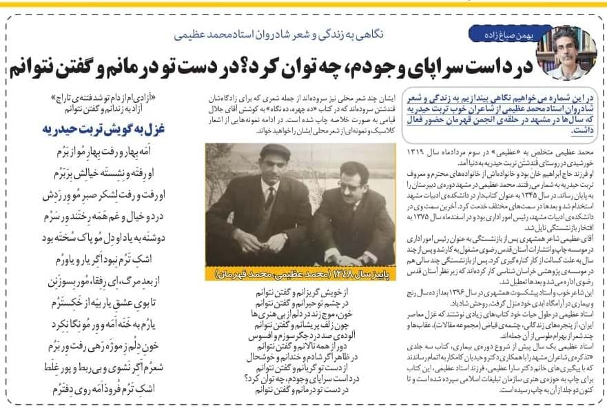 برچسبها: مریم بهنام, بهمن صباغ زاده, شاعران تربت حیدریه, شعر تربت حیدریه